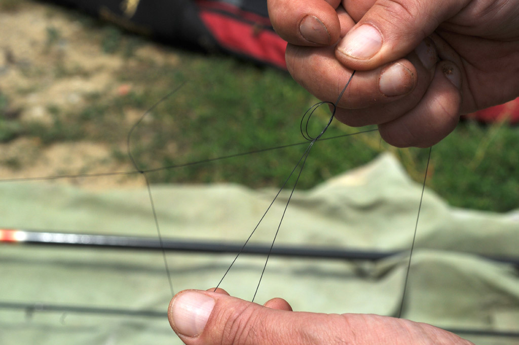 Hranilice tog tipa (proizvođač Browning) namijenjene su ovakvom ribolovu, a krasi ih i mogućnost lakog skidanja olovnog prstena ukoliko procijenite da vam je težina same hrane u hranilici dostatna (što sam ja tijekom ribolova i učinio). Naravno da se u propadanju može loviti i sa drugačijim hranilicama, ali uvijek treba paziti da se lovi sa najmanjim mogućim otežanjem kako cijeli sistem ne bi prebrzo tonuo. No pored samog izbora hranilice za uspješnost pri ovakvom ribolovu podjednako je važna usklađenost i svih ostalih segmenta, pa treba pridati pozornost izradi samog sistema, a pogotovo odabiru i pripravljanje hrane za punjenje hranilica. Što se samog sistema tiče, meni se osobno najboljim pokazao onaj sa malo modificiranom asimetričnom duplom omčom. Od osnovnog najlona, koji je uglavnom Browning Cenex Feeda Line promjera 0,18 ili 0,16 mm, radim veliku omču (dužine 60 - 70 cm) unutar koje ostavljam vrtilicu sa kopčom za koju ću kvačiti hranilicu. Otprilike na sredini te velike omče, znači sa strane, pravim jednu manju omču (dužine otprilike 15 cm), koju još podijelim na 3 - 4 manje omče.